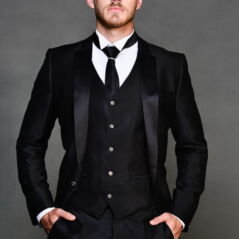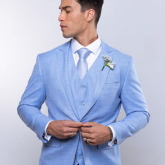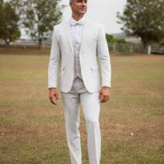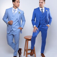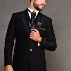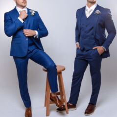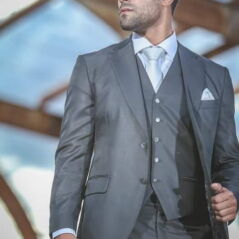 Também oferecemos a confecção de trajes sob medida para os noivos que buscam um visual diferenciado.