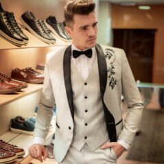 Nosso setor masculino conta com uma assessoria completa, não somente aos noivos, mas também aos padrinhos, orientando e auxiliando na escolha dos trajes, que precisam estar em total harmonia com a cerimônia.